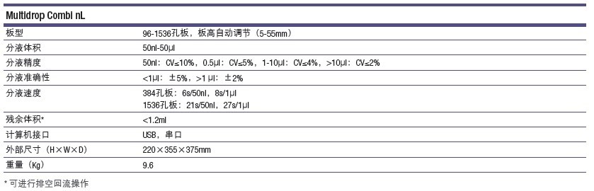 Combi nL的分液板型從96孔板到1536孔板,分液體積范圍從50nl到50μl。與Combi相比,Combi nL具有更大的靈活性,不僅具有分液高度自動調(diào)節(jié)功能,還可以分液到任意行、列或孔。不需要專門的耗材,只需將盛有樣品的15ml錐底離心管放入分液瓶中分液即可。對于樣品量較少的應(yīng)用,可以選配透明的玻璃分液瓶,從而對樣品消耗情況進(jìn)行觀察,這對于進(jìn)行樣品量少的應(yīng)用是十分必要的。